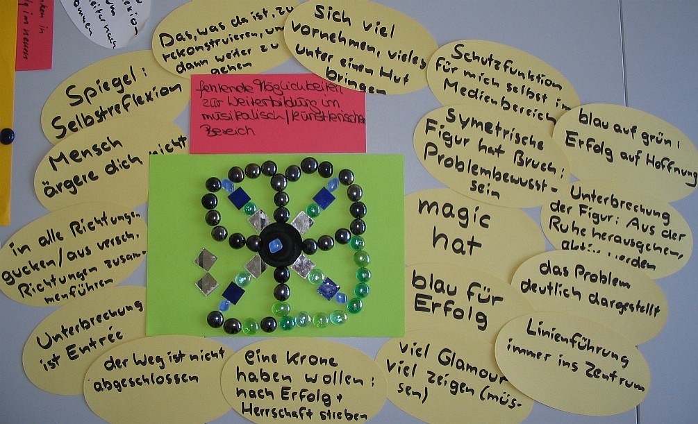 sich den Problemen und Fragen eigener beruflicher Entwicklung künstlerisch zu stellen.